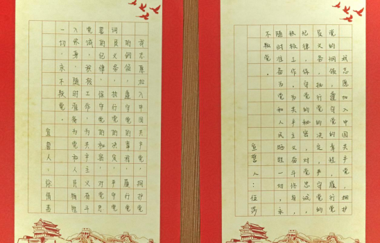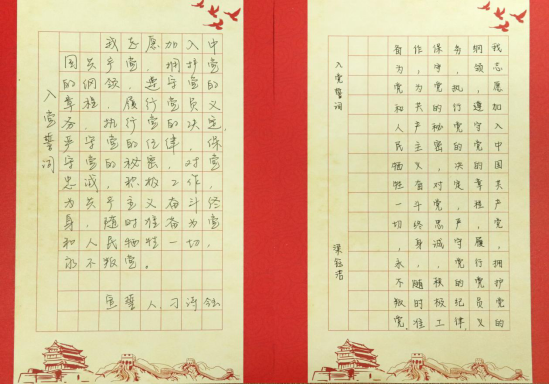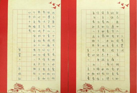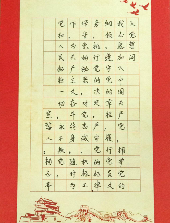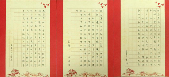 在此,我们选取了部分党员同志抄写的入党誓词进行展示,让我们再次一起庄重宣誓: