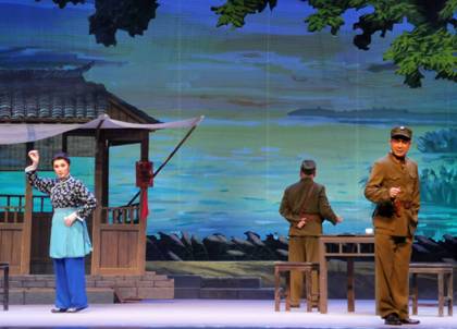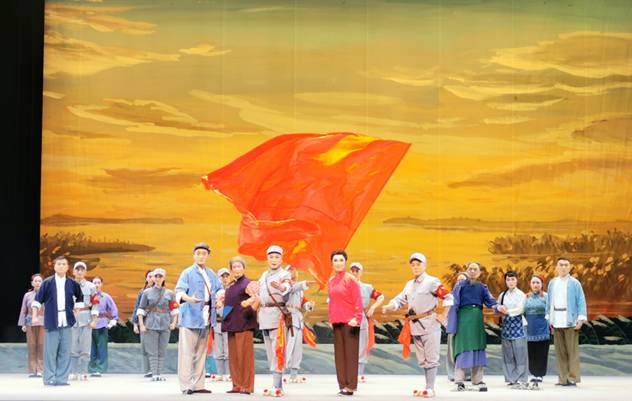 指导员郭建光是全剧中的最主要的英雄人物,由重庆京剧团国家一级演员、梅花奖得主张军强扮演,演员音色嘹亮、字正腔圆,唱念做打无一不精,表演得惟妙惟肖,全面展现了革命英雄察全局、观敌情、坚守使命、紧握手中枪的光辉形象。剧情张弛有度,《智斗》的经典唱段确实脍炙人口,剧场里回响着轻声的跟唱。国家一级演员、白玉兰奖榜首程联群扮演的阿庆嫂不论是身段,还是唱腔都给观众们留下了难以忘怀的印象,把一个沉着冷静,遇事不慌,机智勇敢的地下党员塑造得真实生动,极具魅力。重庆京剧团的演员们精彩的表演有极强的代入感,令观众回味无穷。难怪谭万文老师在观演后无不感慨地在朋友圈写到:“阳澄湖畔沙家浜,同仇敌忾热满腔。任由奸人施雕技,排危除寇迎曙光。”这正体现了中华民族浩气长存。