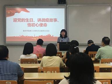 疫情期间,学院高度重视,积极组织老师们参与到抗疫工作中,学院先后有部分党员和非党员老师主动请缨参加了学校的志愿者先锋队,用自己所学为抗疫做处贡献。唐昉老师介绍了市政协委员、院长助理朱海燕老师的事迹,不仅参与到为市防疫工作提供翻译服务,还从经济上帮助身处武汉市的学生渡过难关。朱老师表示:“能作为川外人参与到抗击新冠疫情的事业中,感到非常荣幸。我们比起重庆的医务工作者来说能做的太少,但只要需要,愿意竭尽所能为重庆的发展、为国际合作做出自己的努力,希望能有更多机会服务重庆,服务人民。”