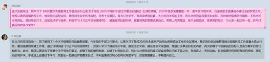 首先是学习中央关于疫情防控工作的最新部署,《中共重庆市委教育工作委员会办公室关于印发2020年组织干部工作要点的通知》。通过学习这个部分,各同志对2020年中共重庆市教委的工作部署有了进一步的认识和理解。闫凯同志表示:“学校认真抓疫情防控工作,制定师生返校安排,确保师生安全有序返校,任务十分艰巨。身为川外学子,我应大力支持学校的工作,做好疫情防控措施。”廖庆梅同志则表达了其期盼:“通过学习中央关于疫情防控工作的最新部署,更能理解党中央对疫情的高度重视,相信在总结经验的基础上,运用行之有效的做法,疫情防控成果定会更加明显。”