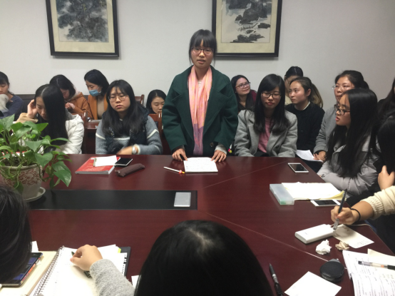 首先,由2014级党员王先进同志讲授党课。先进同志通过学校一位卖书的老人为切入点,为在场的同志带来关于青年学生如何对待自身理想的讲话。先进同志认为,青年学生党员应时刻密切关注身边事物,为学校乃至社会做出自己的贡献,逐渐实现自身的社会价值;青年学生党员的理想应与实现自身的社会价值相挂钩。王先进同志的发言,让在场的同志都受到撼动。