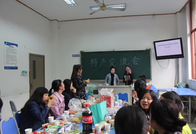 3月2日下午,2015级1班同学们举行了一次别具一格的美食盛宴——“家乡特产交流会”。同学们分为三个小组一同准备这次聚会。现场组的同学们在下课后早早地赶到教室布置现场,营造聚会的氛围。零食组和水果组的同学买好水果、零食和饮料,搭配着同学们带来的各种特产美食,令人胃口大开。