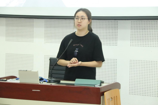 第一位进行分享的是考取了南开大学英语口译专业的刘梦瑶。她围绕考研基本信息、参考书目与学习方法、考研小提示几个环节进行分享,着重介绍了自己本科阶段的学习情况,分享了选择考研目标高校方面的经验,详细讲述了自己在备考前、中、后期不同的学习侧重点以及各种考试答题技巧。最后,她为学弟学妹们推荐了自己的备考参考书目