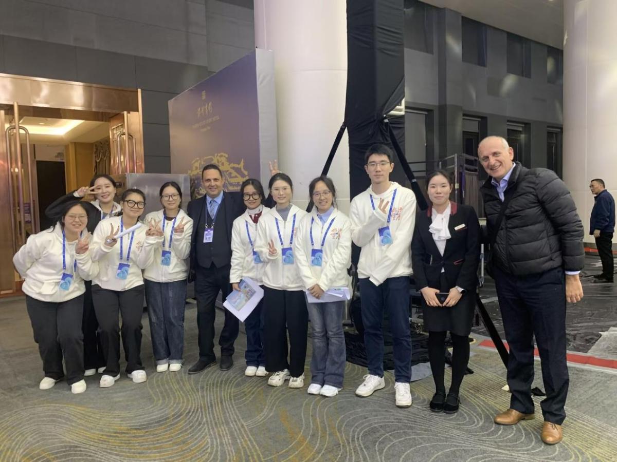 来自10余个国家的驻华使节及领事官员,以及30多个国家和地区的文旅代表团共襄盛会,致力推动世界旅游业共创新繁荣,助力重庆打造世界知名文化旅游目的地。我校同学充分发挥语言优势,为国际嘉宾提供语言支持,确保活动顺利进行,并协助解决外宾在华旅行、生活中遇到的疑问。