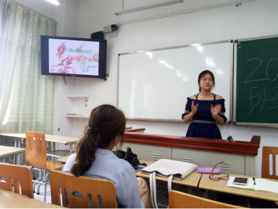 首先是吴思瑶同学代表小组成员分享阅读神话类书籍《众神的星空》的读书感受。《众神的星空》这本书即从天文的角度出发,覆盖希腊神话体系,并以英语词源词汇为落脚点,对相关知识进行了系统的分析讲解。它既能帮助我们掌握希腊神话故事,又让我们学习语言的词源,帮助我们学习英文,是一本十分适合中国学生学习的书籍。而谭秋霞同学推荐的名著类著作《蝴蝶梦》以新的角度为我们展示了一段浓厚的爱情故事,文中的吕蓓卡是一个已死的人物,然而她却时时处处音容宛在,并能通过其忠仆、情夫等继续控制曼陀丽庄园。而庄园的女主人表面脆弱,实则内心强大,在恶劣的环境中始终保持自我,同时慢慢变作成熟、顽强、自主的女性。它对政府专治、资本主义进行了批判与挑战。然后是陈莉同学同我们分享了阅读戏剧类书籍《Romeo and Juliet》的感想。戏剧讲述了两位青年男女相恋,却因家族仇恨而遭不幸,最后导致两家和好的故事。陈莉同学在为我们分享时,播放了一段视频供我们欣赏,这让我们同学对这本书有了更加深刻的了解,激发了同学们的阅读兴趣。紧接着,杨永霞代表的第四组同学为我们介绍了东野圭吾悬疑类书籍《解忧杂货店》与《嫌疑人X的现身》的英译本。《嫌疑人X的现身》讲述了一个数学天才为了帮助一对母女隐藏杀害前夫的罪行,以严谨罗密的思维和警方展开了一连串的斗智,制造整个骗局。这本书是一本长篇推理小说,它的文字细腻,思维严谨,特别是最后真相大白是给人当头一棒。杨永霞同学在给我们分享这两本书时,播放了靳东与刘昊然的朗读音频,这给我们一种新的方式来阅读书籍:边听边看,这让我们对书籍内容有了更加深刻的了解。而第五组同学吴静雯为我们献上了一个神奇的魔法世界,向同学介绍了科幻类小说《哈利波特》。这套书一共有七本,向我们展示了年轻的巫师哈利波特的学习与冒险的故事。这本书虚构了一个真实的魔法世界,学校的有校徽、校训,甚至每层楼的构造都在书中写的清清楚楚,让我们置身于一个魔法世界。阅读《哈利波特》很好地增加英语单词,并为不失童心的成年人提供了无尽的乐趣,更重要的事它让我们感受到德行的力量,使我们学会明辨善恶。而第六组的李尚澄为我们播放了英文诗歌的朗诵音频,并为我们介绍了欣赏英文诗歌的方式。