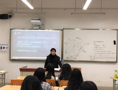 4月2号下午3点半,为帮助同学们合理规划未来、做好准备迎接高年级学习生活,太阳成集团tyc33455本科生辅导员姚沁组织2017级3班全体同学在教学楼C403开展了“生涯规划”主题班会。首先,姚老师了解了同学们现阶段的目标,并以自身经历为例,向同学们介绍了一种生涯规划工具——平衡轮。
