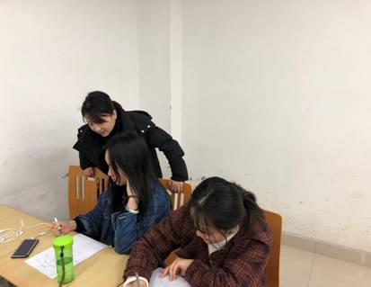 辅导员指导同学们制作平衡轮