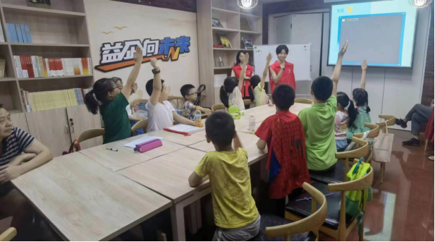 7月14日,学院三下乡志愿服务团队与站东路社区工作人员一起打造的大学生暑期公益课堂服务进入了第五天,今天的课程主题是“动画梦工厂”。通过经典英语动画片展演,提高辖区小朋友们学习英语的积极性和互动性,激发孩子们学习英语的兴趣。为了确保课堂能够有趣、顺利开展,小分队的志愿者们认真准备,提前搜寻、剪辑了许多小朋友们熟悉的外国动画片小视频,并添加到PPT中制作成精美有趣的课件;同时,志愿者们也为小朋友准备了小礼品。上课伊始,小分队成员王亚熙先用有趣的动画片带动并激发孩子们的学习兴趣,再运用启发式的语言,引导学生学会观察画面,积极动脑想一想、猜一猜、说一说、画一画,给学生留下充分的想象空间。三位志愿者分别以海绵宝宝、辛普森一家等英文版动画片为授课素材。从简单词汇,到语句,循序渐进,大家认真听讲,大声跟读。随后,两两情景对话练习、“你画我猜”的英语趣味小游戏,逐渐把课堂氛围推向了高潮。最后,同学们让小朋友分组进行对话表演,并给每组小朋友发放小礼品,通过寓教于乐的方式、轻松欢快的课堂,加深小朋友们对所学知识的理解和运用,也让孩子们在不知不觉中对英语产生兴趣,激发了孩子们学习英语的动力。