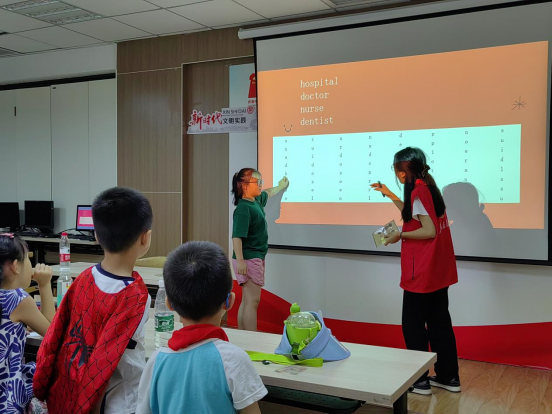 小分队老师们在课后对教学进行总结时说道:“通过这次教学,我感受颇深。在课堂上,小朋友们对这种以游戏为载体展开的英语教学模式十分感兴趣。虽然一开始有些小朋友在课堂上表现得有些许拘束,对于主动举手回答问题反应迟疑,但随着课堂气氛慢慢活跃起来,他们也一个个变得热情似火,踊跃举手,争取每个展现自我的机会。对于那些不认识或是不熟悉的单词,小朋友们都带有强烈的求知欲,会主动寻求周边同学或者其他志愿者的帮助和提示,再通过自己的思考得出正确答案”。“兴趣就是最好的老师”,在游戏中学习的方式使他们对这堂课充满了兴趣和好奇心,极大地激发了小朋友们的学习热情”。