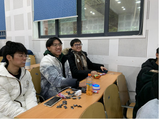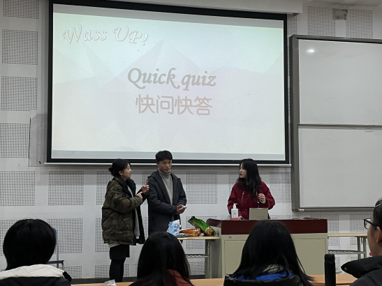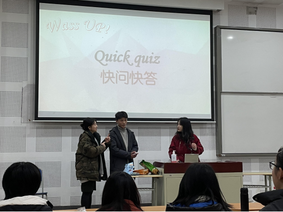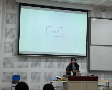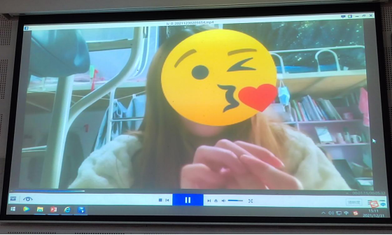 随后,主持人向同学们分享了两个温暖的小视频,第一个视频是2021年12月23日晚上拍摄于川外图书馆,正值考研前夕,同学们带着吉他和音响来到图书馆,为奋战在考研前线的考生加油打气。大家拿出手机打开亮光,挥动着双手,一起合唱“夜空中最亮的星”。温暖的歌声在图书馆中久久回荡。第二个视频是一个因为疫情被隔离在寝室的西安大学生,她通过视频分享了自己得到的帮助,她乐观积极的心态感染了在座的同学,大家纷纷祝愿疫散花开,国泰民安。