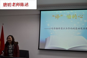 在教师教学研究陈述环节中,秦勤老师结合自己在中欧同传项目的学习经历,针对释意派翻译理论家塞莱斯科维奇的“三角模式”,通过“Warm-up Exercise”、“Interpreting-related Technique”、“Interpreting Exercises”和“Homework”四个教学环节的设置,实现《口译(一)》课程在翻译专业人才培养中的教学目标;罗玉婧结合国内口译教学的“广外模式”和《视译》课程在翻译专业人才培养中的定位,提出了自己口译教学的“技巧、专题、能力转换、实战”四大核心模块,并对本科阶段是否应该开设《视译》课程提出了自己的观点;马理惠采用建构主义理论,根据本科翻译专业双学位学生的特点,从词汇、话题拓展、段落写作、论辩技巧、篇章把握等方面,阐述了建构学生写作能力的途径和对学生写作能力进行科学评价的方法;唐昉则以学生翻译意识的培养为核心,以《“译”动的心——本科翻译专业基础英语教学新思路》为题,阐述了“以翻译能力和翻译意识为核心,全面培养学生英语基础技能”的教学改革研究与教学设计。