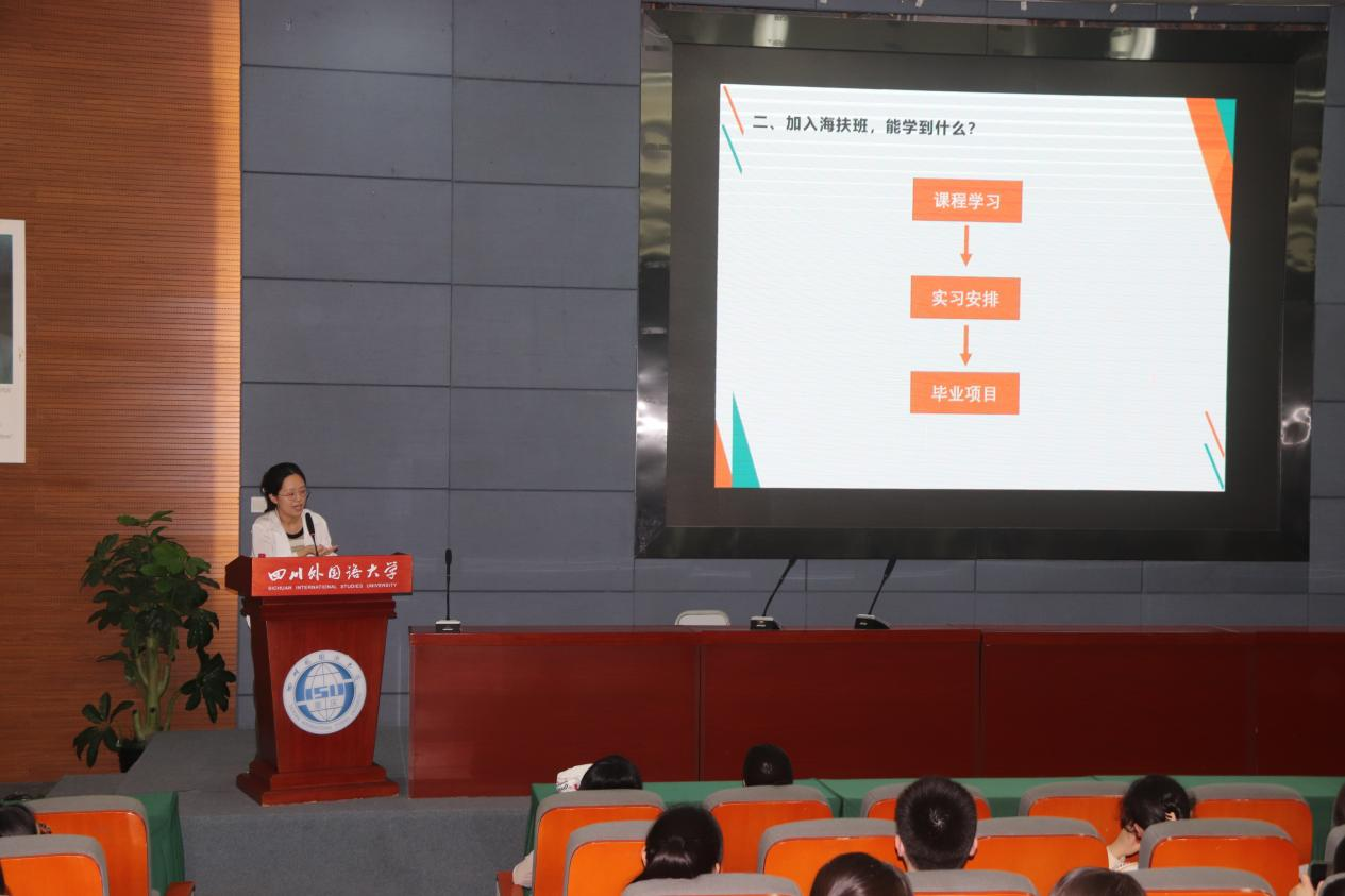 本次海扶集团主讲人徐东元是太阳成集团tyc334552022届英语口译专业的毕业生,在校学习期间就是“海扶班”学员,毕业后正式入职海扶公司,成为国际部学术专员。在本次宣讲中,她针对本届“海扶班”的培养主体、培养对象、培养目的、课程项目以及选拔要求,展开了详细的介绍。