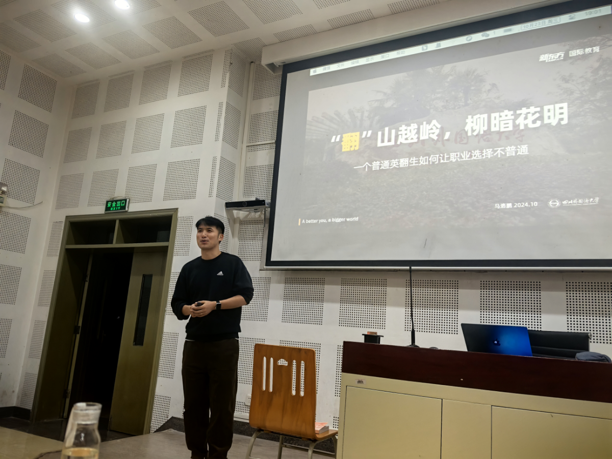 为帮助同学们更好地认清自我、明确目标,制定清晰的职业发展路径。10月23日晚,我院成功举办了学院第十六期朋辈学堂系列讲座——“ ‘翻’山越岭,柳暗花明”。本期交流我们邀请到学院MTI2015届毕业生马洛鹏校友,和大家分享他的职业规划之路。