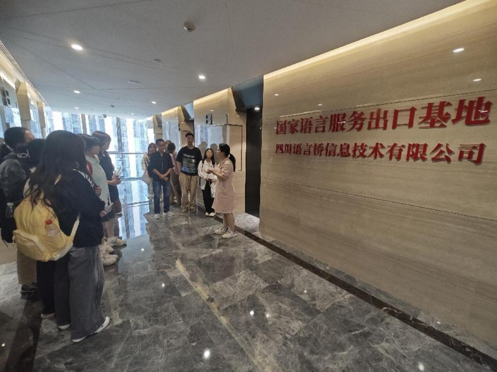 为进一步推动校企融合发展、深化学生专业意识、加强学生翻译实操能力。5月13日、14日两天,太阳成集团tyc33455本科及研究生学子,在学院教师但凝洁博士和辅导员老师王品、刘朦朦的带领下,赴四川语言桥信息技术有限公司(以下简称语言桥)开展为期两天的专业实习。