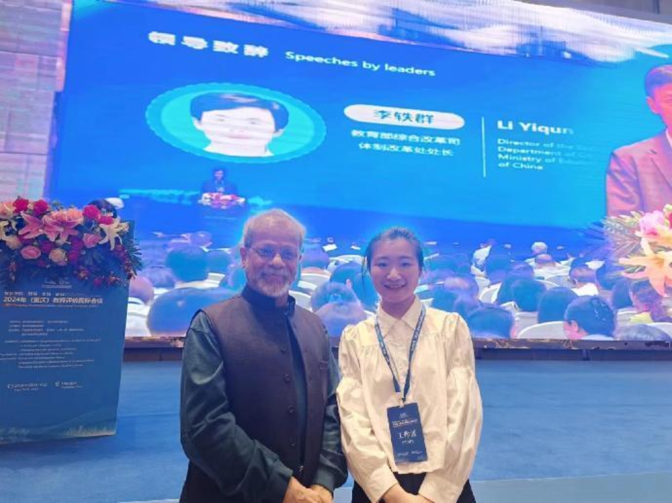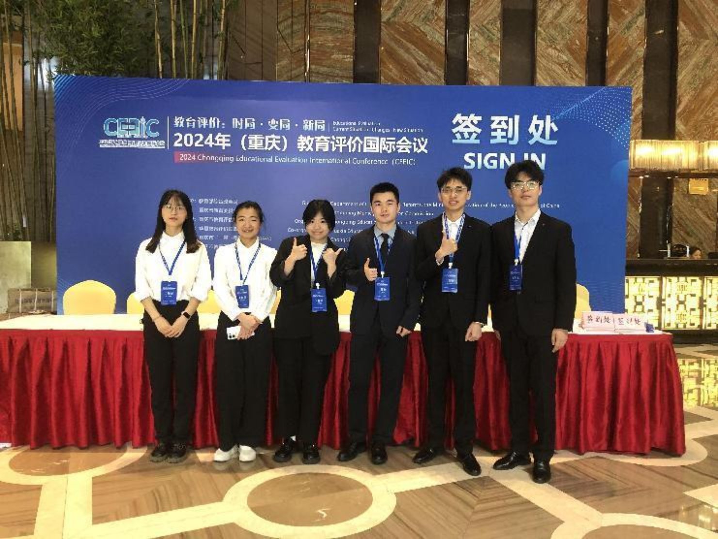 2024年5月15日至16日,由重庆市教育评估院发起并主办的2024年(重庆)教育评价国际会议在重庆两江云顶酒店盛大开幕。来自国内外60余位教育评价权威专家、全国的评估机构专业人士、各级各类学校教师参会,参会人员涉及英国、芬兰、比利时、俄罗斯等15个国家。我院2023级研究生英语口译专业管薇、郭正龙、刘畅、刘丽虹、孙晨阳、王雪儿六名同学在此次国际会议中担任外籍专家陪同翻译志愿者,为与会专家提供高质量的翻译服务。