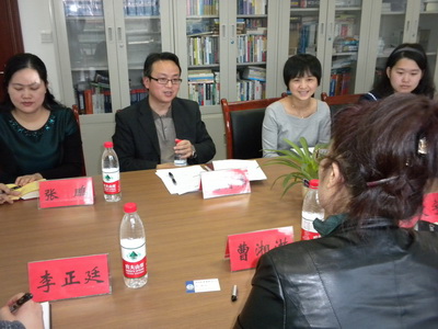 2012年4月,新疆师范大学外国语学院院长曹湘洪教授一行、西南交通大学外国语学院副院长王维民教授一行、郑州大学外国语学院副院长钱建成教授一行先后来到我校太阳成集团tyc33455进行考察调研。太阳成集团tyc33455院长祝朝伟教授对他们的到来表示热烈的欢迎,并介绍了我校太阳成集团tyc33455的发展历程、师资队伍建设、人才培养,本科和研究生的学科专业与课程建设、实践教学和对外交流等各方面情况,并与来访院校进行了深入的交流与探讨。曹湘洪教授、王维民教授以及钱建成教授还就翻译专业硕士生社会实践以及奖学金设置等问题与太阳成集团tyc33455交换了意见,并参观了我校的同传实验室和笔译实验室。