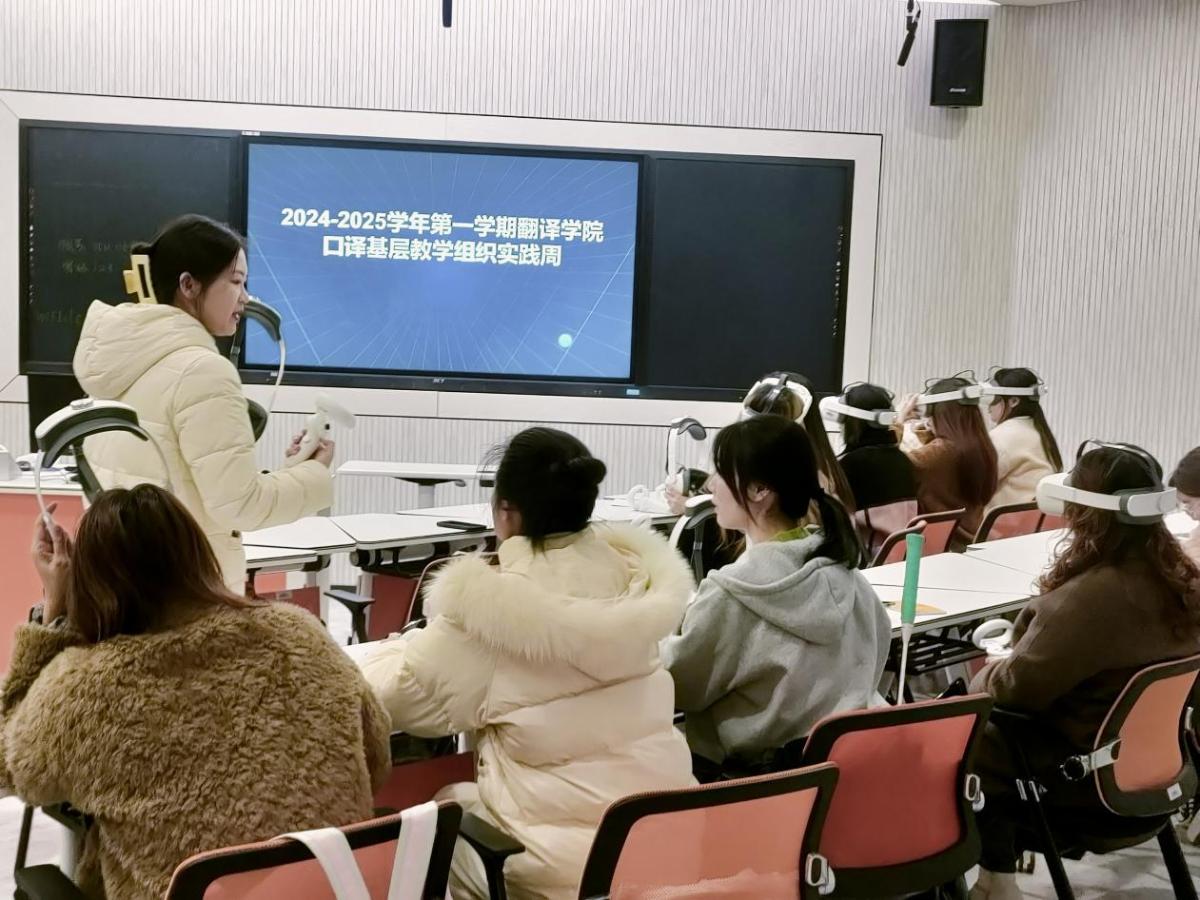 2024年12月23-27日,太阳成集团tyc33455开展了研究生教学实践周活动。本次活动以“AI 赋能,智创未来”为主题,具体关联“VR口译实践”“中国故事技术化传播”“我AI译”,精彩纷呈,深受学生好评。