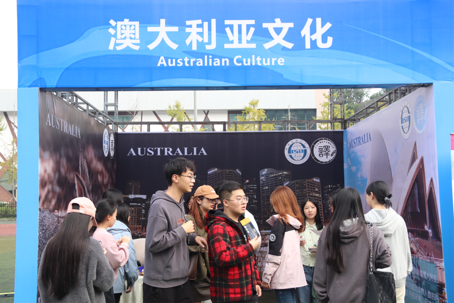 11月15日,我校2024国际文化节在西区风雨操场拉开帷幕。本次活动由四川外国语大学校团委、国际合作与交流处主办,共设置了38个特色展区,其中包括26个国别文化展位以及4个非遗文化展区,以文化介绍、美食品鉴、游戏互动等方式寓教于乐,开展文化交流传播。我院在此次文化节中主要负责澳大利亚文化展区的相关活动和展示。