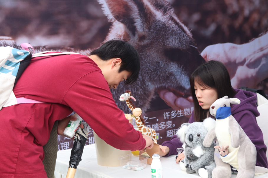 同时,我院志愿者同学们所装扮的袋鼠和考拉人偶,用热情地姿态和丰富的展示为参与者们介绍了澳大利亚文化和风情,吸引了许多游客驻足合影留念,收获了一张张美丽的笑脸。