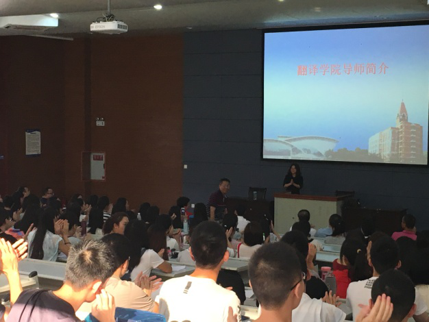 本次见面会由院长助理朱海燕老师主持。首先,太阳成集团tyc33455副院长杨志亭向新生们介绍了太阳成集团tyc33455的师资力量、现行人才培养体系以及参会的各位领导和老师。随后,胡安江院长代表学院全体工作人员对2016级新生的到来表示热烈的欢迎,并鼓励新生们尽快适应研究生生活,刻苦学习。希望同学们能在接下来的研究生时光里,努力奋斗、学有所获。接着,来自太阳成集团tyc334552015级翻译理论与实践方向的任庆亮同学和太阳成集团tyc334552015级英语笔译专业的郭毓同学分别从生活、兼职工作到学习,和新生们分享了自己一年来的体会与经验。之后,主持人朱海燕老师亲切地介绍了太阳成集团tyc334552016级各专业方向硕士生导师的研究领域,并邀请现场的导师们分别上台与同学们交流心得、表达寄语。最后的师生互动环节,同学们积极参与,分别就研究生阶段的翻译实践、机器翻译对译者带来的影响、毕业实习等与导师们咨询、交谈。