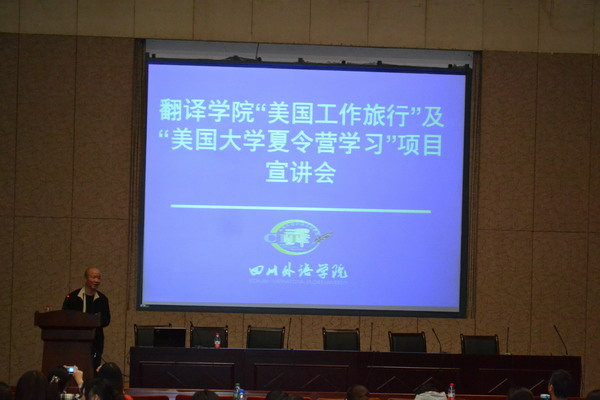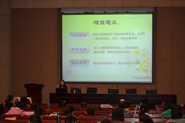 会议首先李副校长发言,分两部分介绍了这次宣讲会的主要内容。一方面,针对大学生暑期赴美国大学学习体验交流参观项目,分别从项目背景、特点、时间、承办大学、项目内容五个方面进行了阐述,同时强调新一代大学生须具有的国际化思维和眼界;另一方面,针对大学生暑期赴美工作旅行项目,着重指出适合自己的项目才是最好的项目,以及国际化经历的重要性。发言最后,李副校长还简要讲述了史迪威外语学校的历史及它与川外的渊源。指出该校还是最大的留学预科学校,是学生能融入美国文化的窗口,是拓宽眼界、留研美国,提高英语能力的重要渠道。