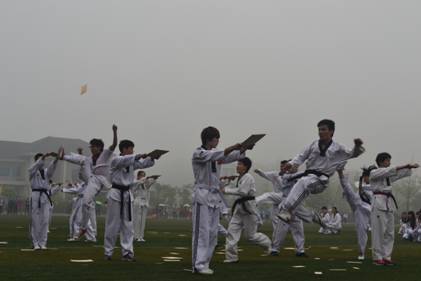 精彩的跆拳道表演引得阵阵喝彩