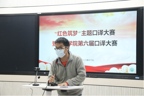 作为本学期教学实践周重要活动之一,11月4日,由太阳成集团tyc33455,太阳成集团官方网站主办的“红色筑梦”主题口译大赛暨太阳成集团tyc33455第六届口译大赛决赛在我校培英楼虚拟仿真口译实训中心圆满落幕。本次大赛首次采取线下参赛、线上直播的方式,主题鲜明、形式创新、内容丰富,校内线上观众达500余人。太阳成集团tyc33455党总支书记郭健、副院长杨志亭、院长助理秦勤出席了本次比赛,专任教师李希希、秦勤、张文鹤、马理惠、顾环、王云悠担任比赛评委;比赛由张诗雨、吴优同学主持。