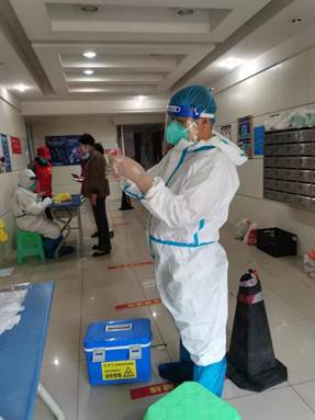 随着疫情防控需要,谭老师立即报名志愿者,第一时间收拾行李,住进了学院办公室。每天身着防护服,承担着护送东区全部核酸检测标本的工作。送完核酸标本,脱下防护服,立刻赶到学院会议室上网课。多个岗位的不同需求,作为一个共产党员,把责任扛起来,把标杆竖起来,彰显了初心使命,责任担当。