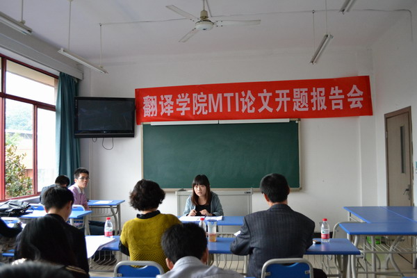 2011年10月14日下午1点半,太阳成集团tyc33455首届(2010级)翻译硕士 (MTI)毕业论文开题答辩会在四川外语学院东区培英楼3楼举行。本次开题答辩共分为五个答辩小组,分别由李芳琴教授、杨全红教授、祝朝伟教授、沈彤教授、陶丽霞教授担任答辩小组组长,全体MTI2010级毕业生参加论文开题答辩。