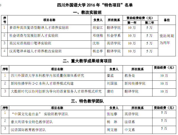 在刚刚结束的2016年“特色项目”申报评选中,经过专家审阅、现场陈述、专家质询等环节的筛选,最后,我院“多语种英西复语型翻译人才培养实验班”、“汉英笔译卓越人才培养教改实验班”、“大数据时代以协同创新为导向的语言服务人才培养模式研究”、“口译基础”在线开放课程、“新编英语语篇翻译教程”等项目被列为2016年校级“特色项目”建设项目。