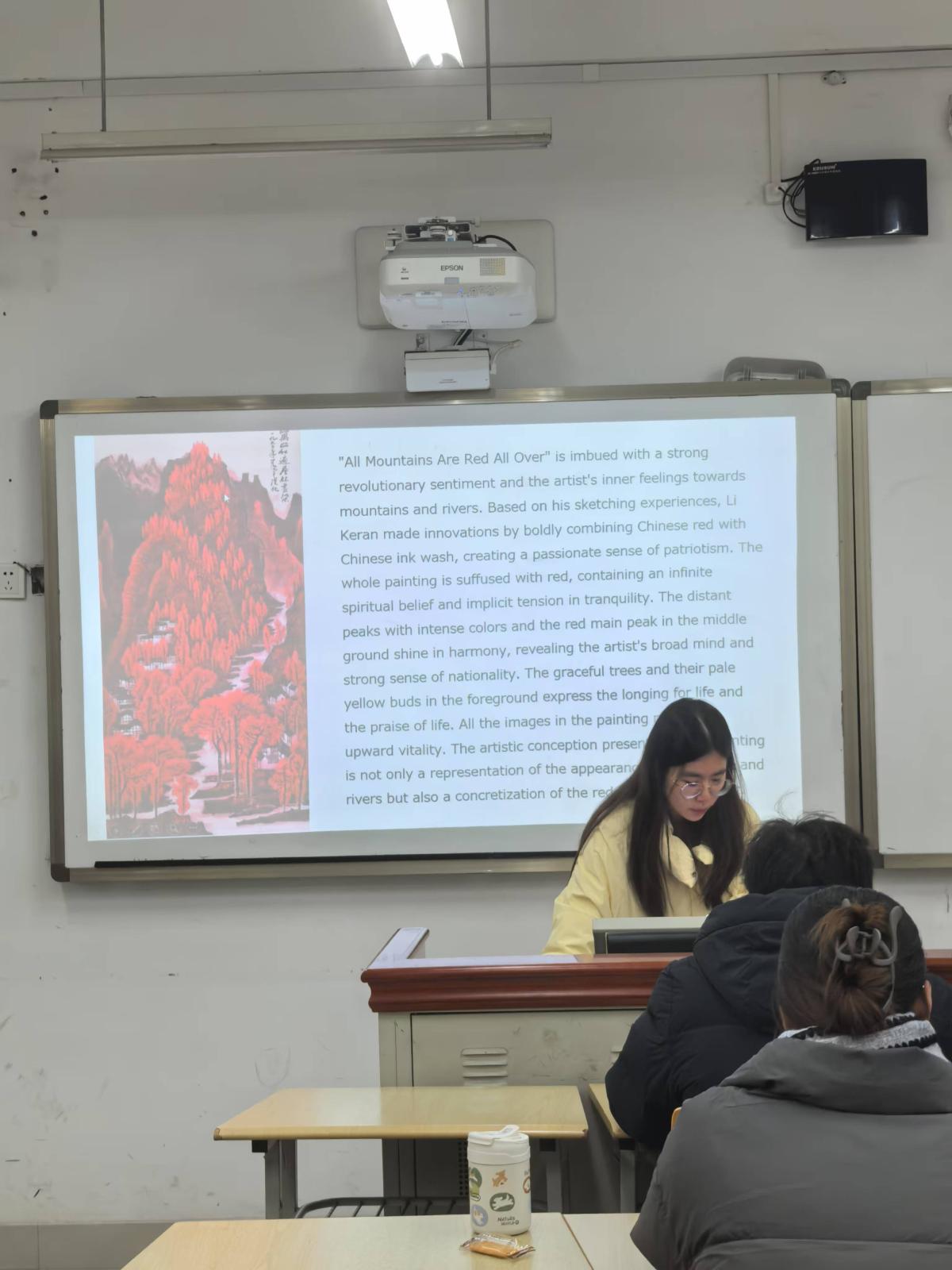 2022级3班参赛选手刘画分享油画《万山红遍》展现的巍峨气势