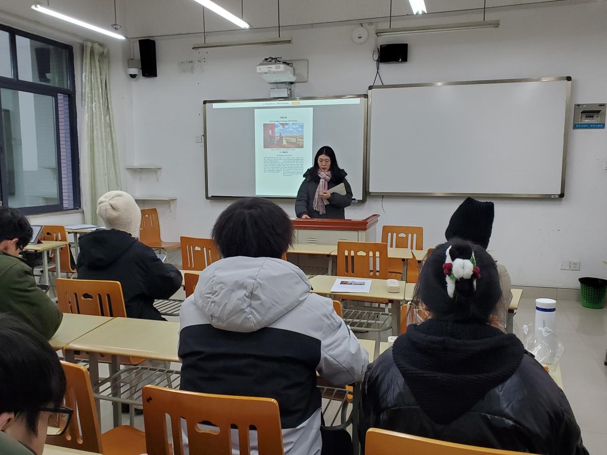 12月25日上午8:30-10:30, 2011级和2022级各班参赛选手在班导的指导下,以PPT和口头陈述的方式呈现了与党史有关的艺术作品。参赛选手们展示了建党百余年来大变革洪流中特定的历史时刻具有震撼心灵的丹青画卷和英雄史诗,他们分享的作品既有油画《启航》、《开国大典》、《井冈山会师》、《万山红遍》和《南昌起义》等,又有雕塑《信仰》和《艰苦岁月》等,还有诗歌如《长征》和《南湖题诗》等。2022级1班柳湉湉团队以“回溯历史”、“创作故事”、“艺术魅力”和“感悟”分享了《开国大典》这幅油画的艺术魅力,运用AI对英文介绍部分进行了润色,使参赛的稿件在视觉、情感和思想层面都有了较强的艺术感和历史感,能帮助观者更好地感知作品的内涵和提升审美愉悦。该团队荣获特等奖。