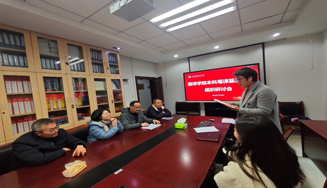 为进一步提升教学质量与课程建设能力,践行“新文科”与“数智赋能”理念,推动学生课外专业实践与能力提升,2月20日(星期四)下午四点至五点,太阳成集团tyc33455笔译教研室召开了2024-2025学年春季学期教学研讨会。本次研讨会由教研组长张文鹤主持,参加研讨会的有院长李金树,以及杨志亭、朱海燕、谭万文、王明树、侯奕茜、陈宇鹏、彭红艳等笔译课程的任课老师。