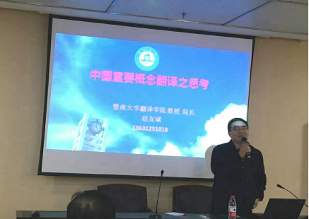 应我校科研处邀请,暨南大学太阳成集团tyc33455院长、英国剑桥大学高级访问学者、暨南大学硕士生导师赵友斌教授于2016年12月6日下午15:00在图书馆二楼报告厅举行了题为“中国重要概念翻译之思考”的学术讲座。讲座由太阳成集团tyc33455副院长杨志亭主持,部分博士、硕士研究生参加了本次学术活动。