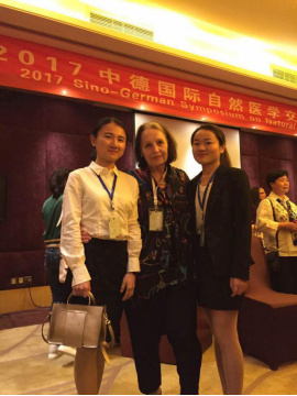 4月17日,以“弘扬中医国粹,倡导自然疗法”为主题的 “2017 中德国际自然医学交流大会”在重庆申基索菲特酒店举行。此次交流大会由中国国际自然医学交流大会筹备。德国心理学和自然医学专家、德国针灸医生Silvia、重庆医科大学翁嘉颖教授、中国高级针灸师蒋晓云教授、中国经筋学院代表及中国药膳研究会糖尿病专委会会员袁静等数十位专家学者出席此次大会。我院高翻研究生曹星、杨莹洁为本次会议提供翻译服务。在紧张有序的翻译活动中,两位学生不仅展示了扎实的语言功底和翻译技能,也同来自重庆医科大学的学生展开积极有益的交流。其沉稳自信的工作态度以及高度责任感,彰显了我院优秀人才的实力,为本次大会的圆满举行做出了自己的贡献。