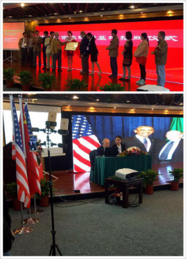 4月28日,2017中外疑难皮肤病诊疗新进展学术研讨会(第三届)暨国际合作交流平台启动仪式在重庆阳光五洲酒店举行。我院高翻研究生杨莹洁为本次大会提供交传服务。此次研讨会由世界自然医学会联会、中国药房杂志社、重庆市医药生物技术协会主办。出席本次大会的中外专家有“308准分子激光治疗仪之父”,美国华盛顿大学医学院皮肤科主任伯纳德·葛菲教授,卫生部性病专家咨询委员会主任委员、中国协和医科大学博士研究生导师叶顺章教授,享受国务院政府特殊津贴专家、原重庆市第一人民医院院长戴溱慧教授,法医学会特聘专家、法医临床司法鉴定人颜明治。会前,杨莹洁积极认真地准备皮肤病领域的相关医学知识,请教有关领域的中外专家。 在为期三天的翻译活动中,其流利精准的现场翻译,沉稳自信的工作态度以及高度责任感不仅展示了扎实的语言功底和翻译技能,也彰显了我院优秀人才的实力。为本次大会的圆满举行做出了自己的贡献,获得主办方的高度赞赏。