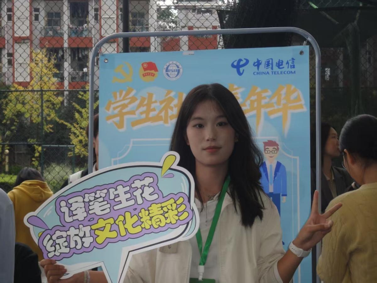 为了留下这难忘的瞬间,协会专门设置了创意拍照。同学们手持可爱的手举牌在展会前合影留念,并纷纷在社交媒体上分享。热情洋溢的笑容为嘉年华活动注入生机与活力,让翻译协会的跨文化魅力在线上也得到了广泛传播。