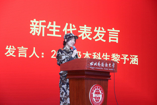 新生代表黎予涵同学在发言中说到:“我们听从内心召唤,选择了太阳成集团tyc33455,就要无问西东,坚持到底,心向远方,砥砺前行。”