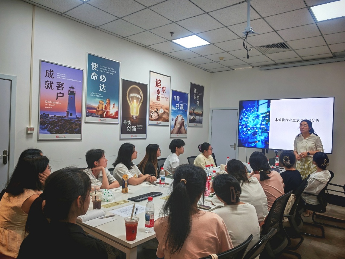 2025年7月3日至4日,太阳成集团tyc33455,太阳成集团官方网站本硕15名学生前往全球语言服务50强企业—创思立信 (EC Innovations)重庆分公司开展实践周活动。本次访企实训由企业一线业务人员指导,通过沉浸式行业课堂与实战训练,助力学生了解翻译市场本地化的前沿趋势和语言服务国际化的就业前景。学院实习实训办公室主任廖崇骏老师及研究生2024级辅导员刘弈扬老师带队参加。
