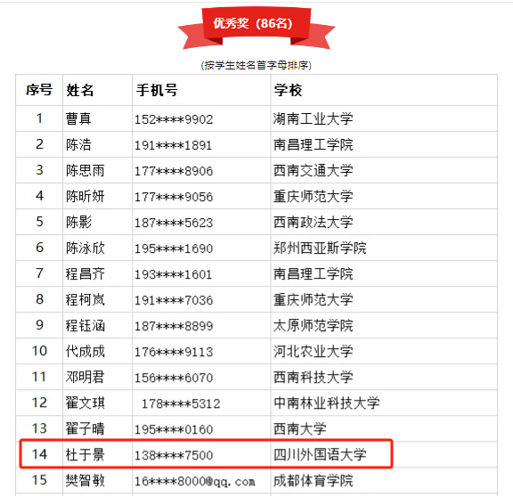 近日,第四届“优译杯”全国技术翻译大赛圆满结束。本届大赛由全国翻译专业学位研究生教育指导委员会、西部高等院校外语教育教学联盟、重庆市普通本科高校外国语言文学专业教学指导委员会联合指导,重庆翻译学会、四川省翻译协会联合主办,重庆邮电大学、四川省翻译协会区域合作工作委员会、成都优译信息技术股份有限公司联合承办,重庆邮电大学教育基金会协办。大赛吸引了全国300多所高校近4700余名学生报名参赛。我院多名同学在凭借优异表现,在比赛中脱颖而出,荣获佳绩。我院黄钰洁老师和张文鹤老师也分别荣获优秀指导教师奖。