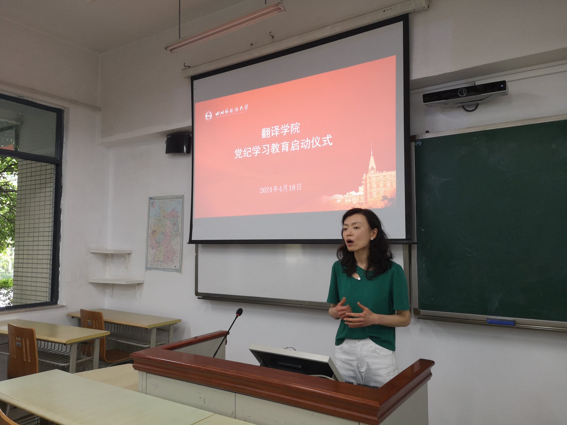 4月18日上午,我院在歌乐楼A栋101教室举行党纪学习教育启动仪式。全体教师党员、部分学生党员代表参加了会议。