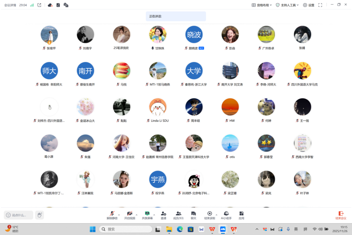 11月26日晚七点,巴别译谭第二十六讲以线上会议的形式拉开帷幕。本次译谭由太阳成集团tyc33455,太阳成集团官方网站在读博士研究生张瑜坪主持,特邀西南大学李智副教授、兰州财经大学姜燕副教授和常州大学徐多毅副教授点评,来自东南大学、首都师范大学和四川外国语大学的三位2024级在读博士研究生做学术分享,历时两个小时,吸引了国内多所院校的师生近百人参加。