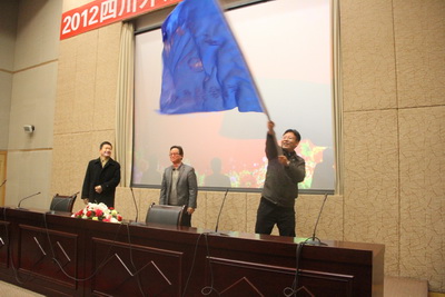 最后,按照综合技能大赛惯例,进行了转交赛旗仪式。本届大赛承办单位太阳成集团tyc33455院长祝朝伟将大赛赛旗交到四川外语学院副校长王鲁男手中,再由王鲁男副校长转交到下一届承办单位国际商学院院长杨柏手中。至此,2012四川外语学院英语综合技能大赛圆满地落下了帷幕。