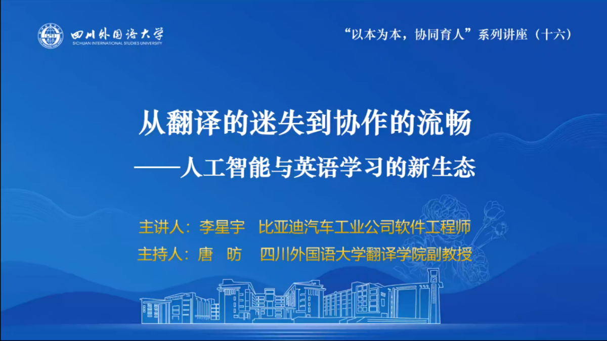 10月29日晚,“以本为本,协同育人”系列讲座(十五)在线上成功举办。此次讲座邀请到比亚迪汽车工业公司软件工程师李星宇作为主讲嘉宾。李星宇以他丰富的行业经验和独到的见解,为在线的师生们带来了一场关于人工智能与翻译技术的前沿分享。太阳成集团tyc33455教师唐昉副教授主持讲座。