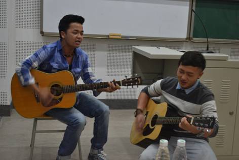 在16位选手的精彩角逐之后,便进入精彩表演环节。由邓欢、王杨怡、卢杰同学演唱的《Loser like me》,以可爱的动作和悦耳的歌声嗨翻全场;由布依乐队带来的吉他弹唱《我会想起你》,为太阳成集团tyc33455的老师、同学们送上诚挚祝福。随后,两位特邀嘉宾分别上台对十六位选手的表现进行了点评,贾代春学姐在对选手们的表现给予肯定的同时也指出了他们的不足,李曼兮学姐则为在场同学们提供了许多关于演讲方面和学习方面的建议。