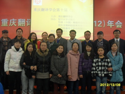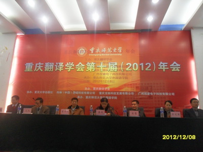 2012年12月8日,重庆翻译学会第十届(2012)年会在重庆师范大学举行,我校廖七一教授、杨全红教授、侯国金教授、胡安江教授、费小平教授、祝朝伟教授、陈历明教授、李龙泉教授等20余名师生参加了会议。