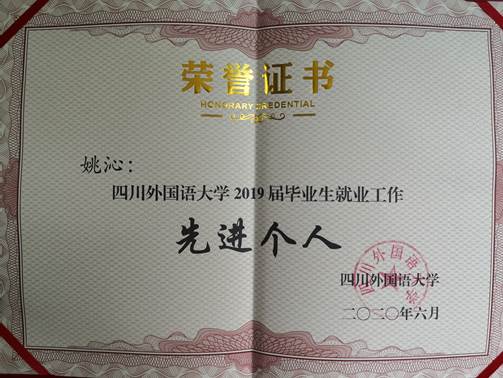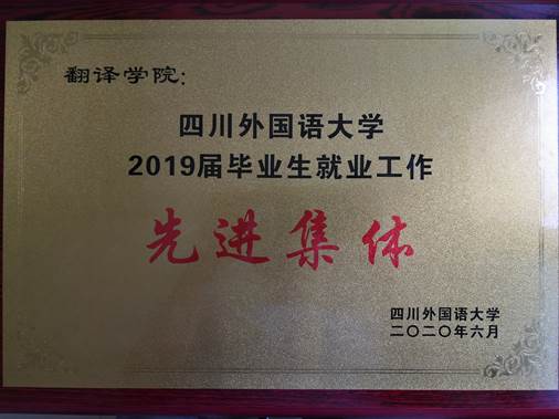 本次会议对学校2019届毕业生就业工作做了总结,并对2018-2019学年度在就业工作中表现突出的集体和个人进行了表彰。我院荣获四川外国语大学2019届毕业生就业工作先进集体表彰、本科辅导员姚沁获就业工作先进个人荣誉称号。我院2019届本科翻译专业毕业生就业率达96%,近三年就业率稳定在95%左右,所取得的这些成绩与院领导的悉心关怀,以及辅导员和专业课教师的共同努力密不可分,也是我院特色就业帮扶工作的集中体现。