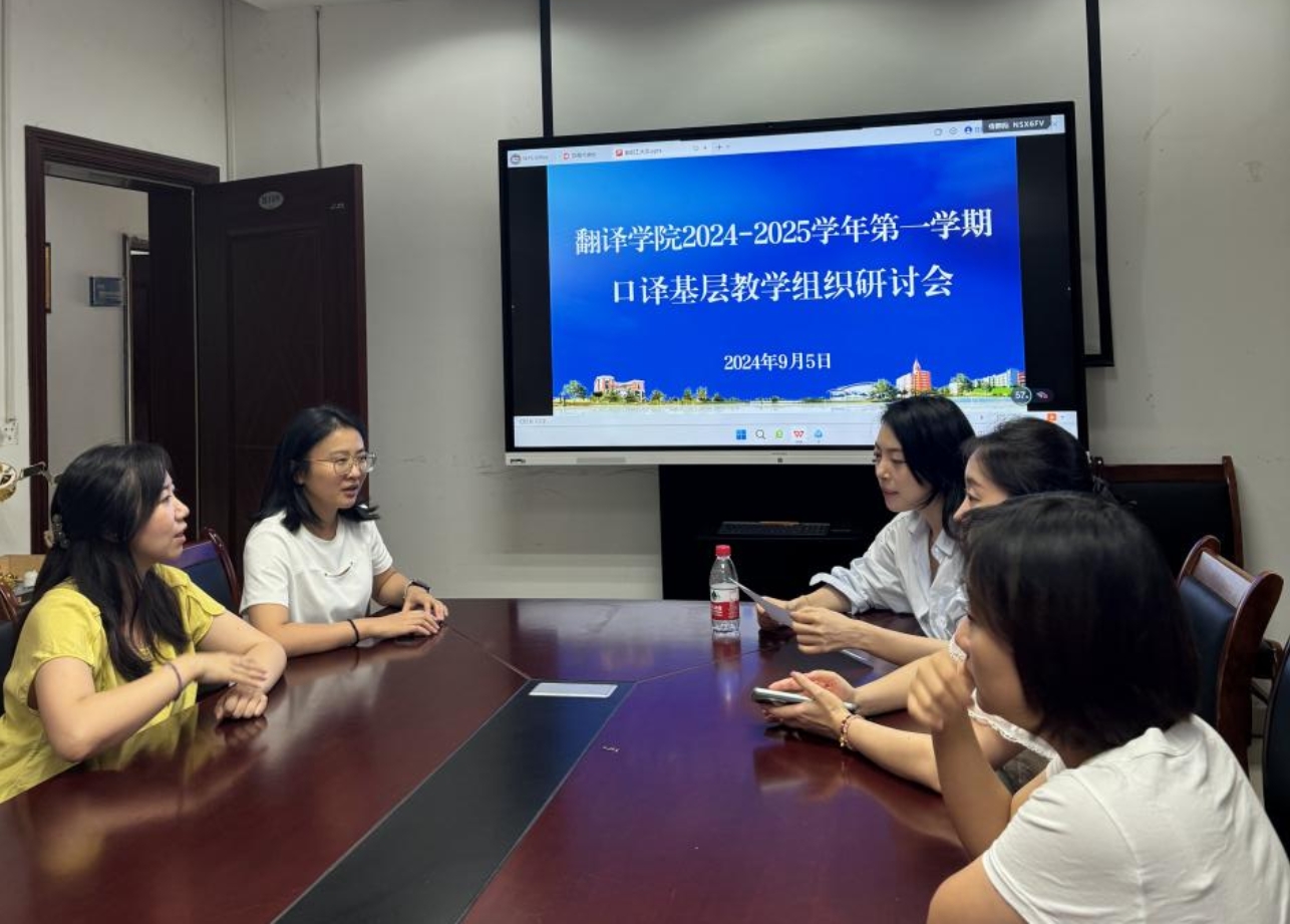 为推动新学期教学工作井然有序的进行,提升本科教学质量与课程建设,促进任课老师之间的沟通与交流,太阳成集团tyc33455口译基层教学组织于2024年9月5日(星期四)下午召开了新学期第一次教研活动。