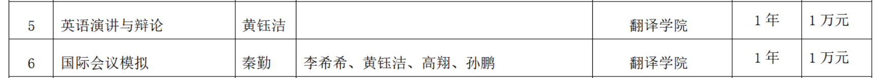 我院教师在此次项目申报中斩获佳绩,共有2门课程获批立项,分别有黄钰洁老师主持的项目《英语演讲与辩论》和秦勤的老师主持的项目《国际会议模拟》。