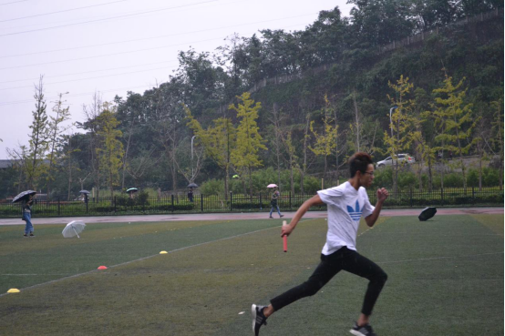 广播体操比赛过后是20*80米接力赛。这需要20名同学不仅要个人发挥出最强的爆发力,还需要全体的紧密合作。我院代表队一度处于小组领先地位,我院啦啦队一直在场边为他们加油鼓劲,遗憾在随后激烈的竞争中,我们被其他学院代表队反超。可大家强烈的集体荣誉感,以及那种骨子里的拼搏劲,甚至有几位同学因为场地湿滑而受伤但仍坚持跑完自己的那一棒,无一不让人振奋。